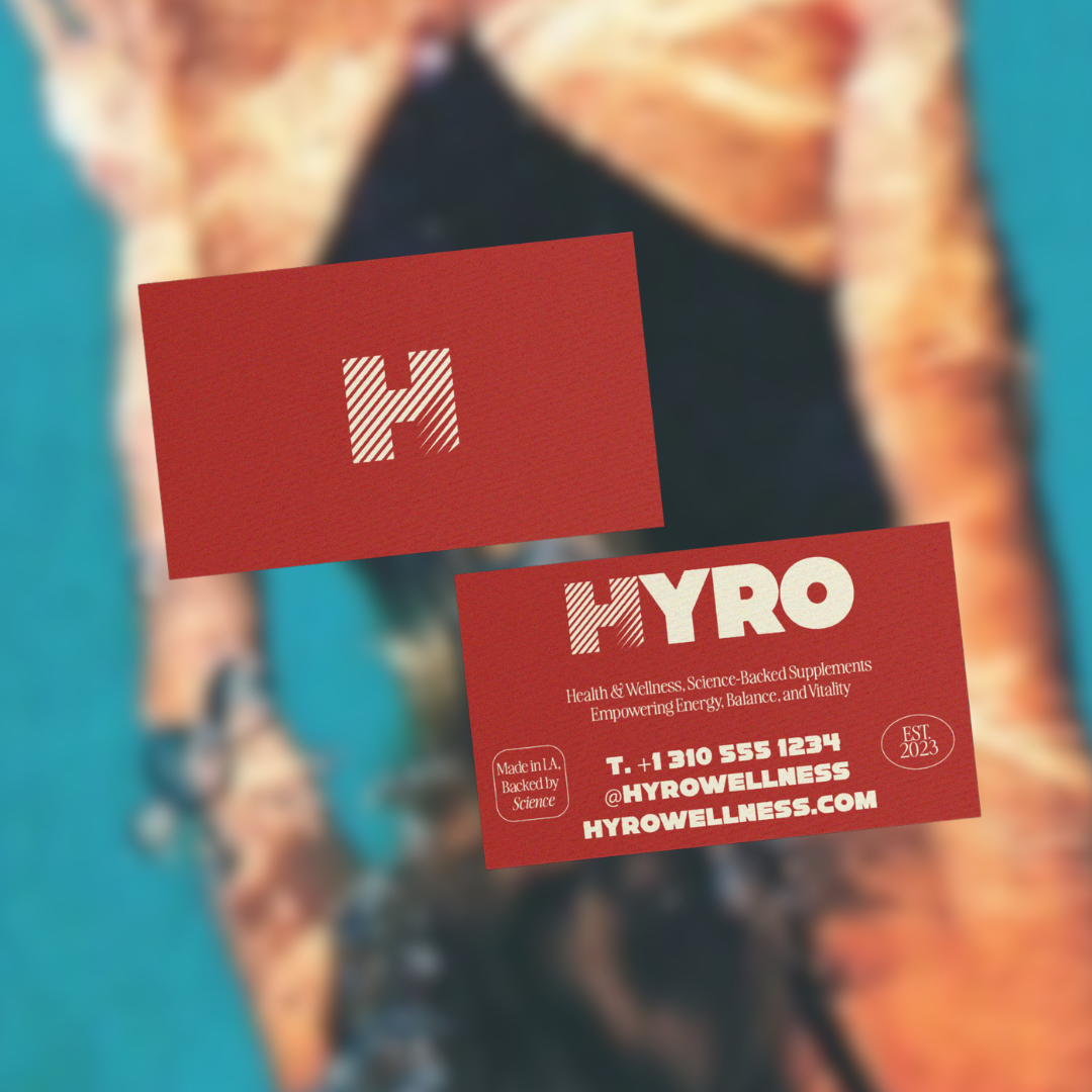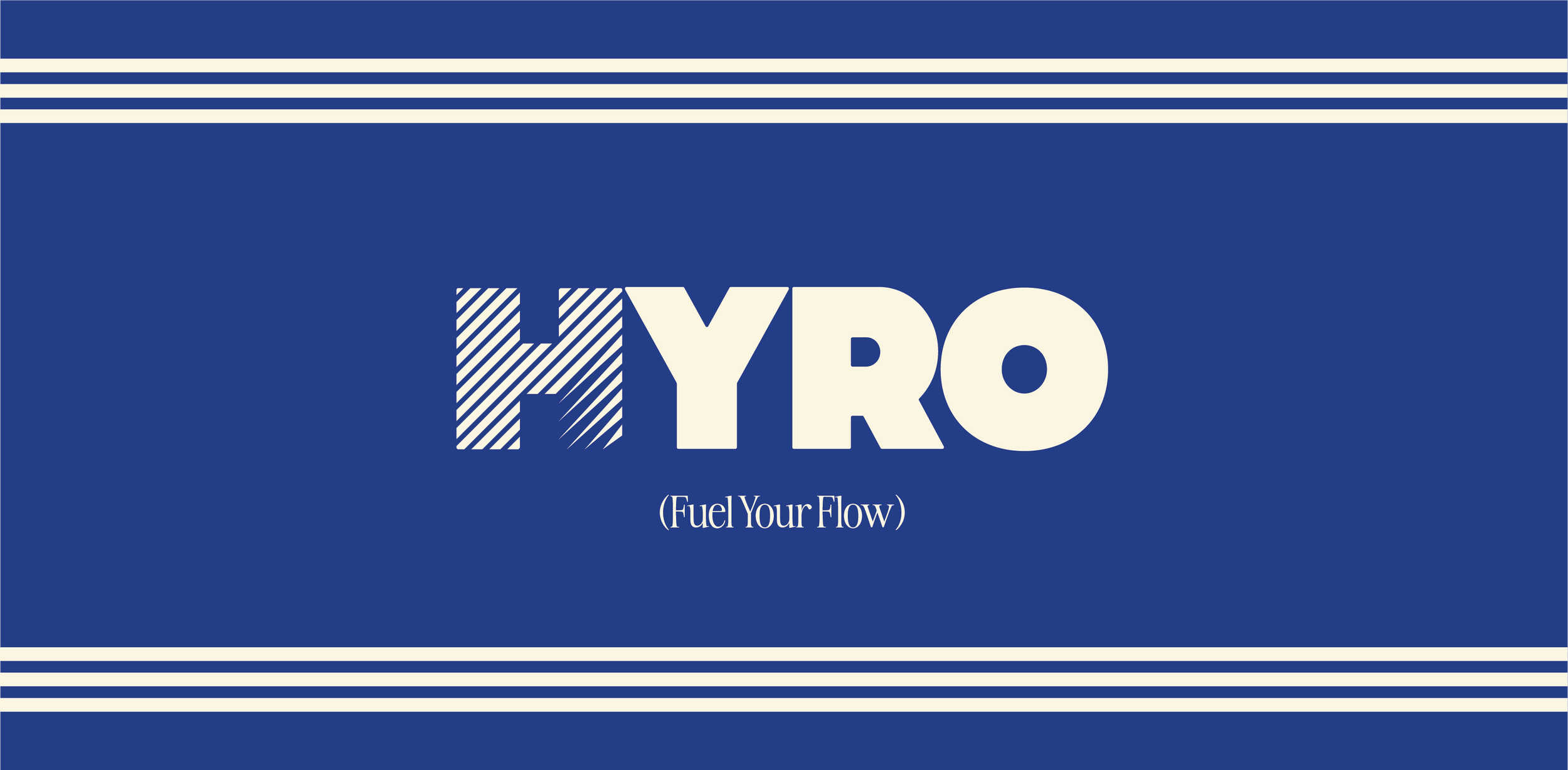The branding reflects a retro-sporty aesthetic, with vibrant blue tones and dynamic design elements that evoke a sense of freshness, energy, and movement. Hyro’s identity is grounded in the idea that wellness should be accessible, inspiring, and seamlessly integrated into an active lifestyle.